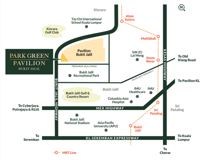 Developed by Regal Path Sdn Bhd, a subsidiary of Maltan Berhad, Park Green Pavilion Bukit Jalil is strategically located along Persiaran Jalil Utama, right next to Pavilion Bukit Jalil. This freehold property sitson a 0.92-acre plot and is designated as a serviced apartment, offering residents both convenience and exclusivity.